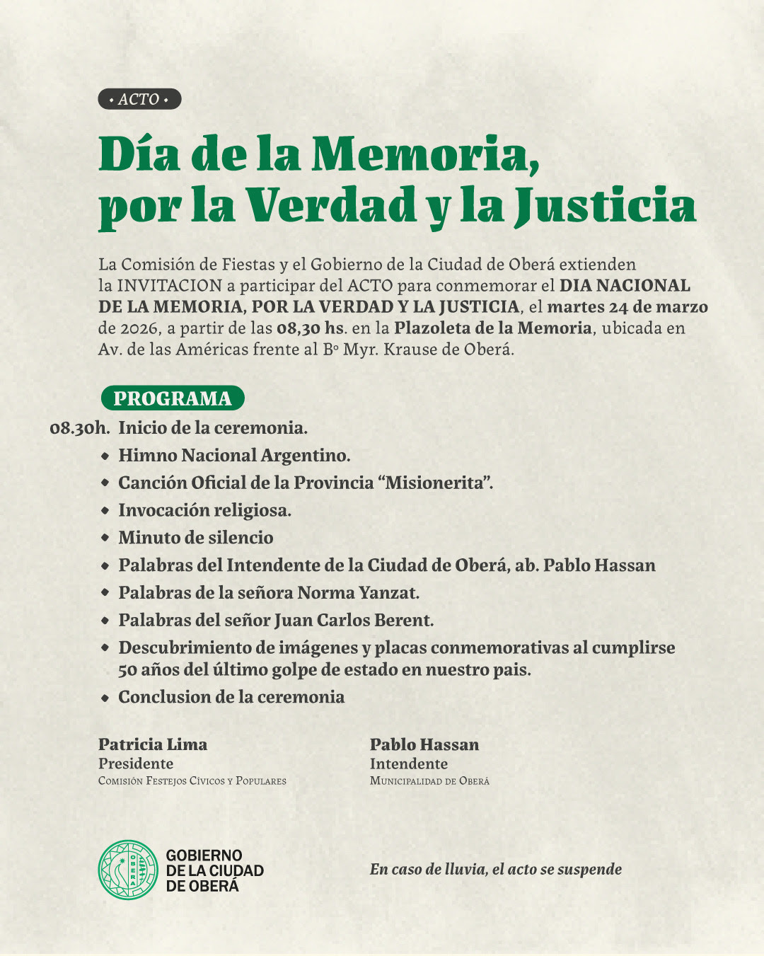 El Gobierno de la Ciudad de Oberá convoca a los vecinos del Barrio Punta Alta a participar de una asamblea informativa en el marco del proceso de renovación de autoridades de las Comisiones Vecinales.