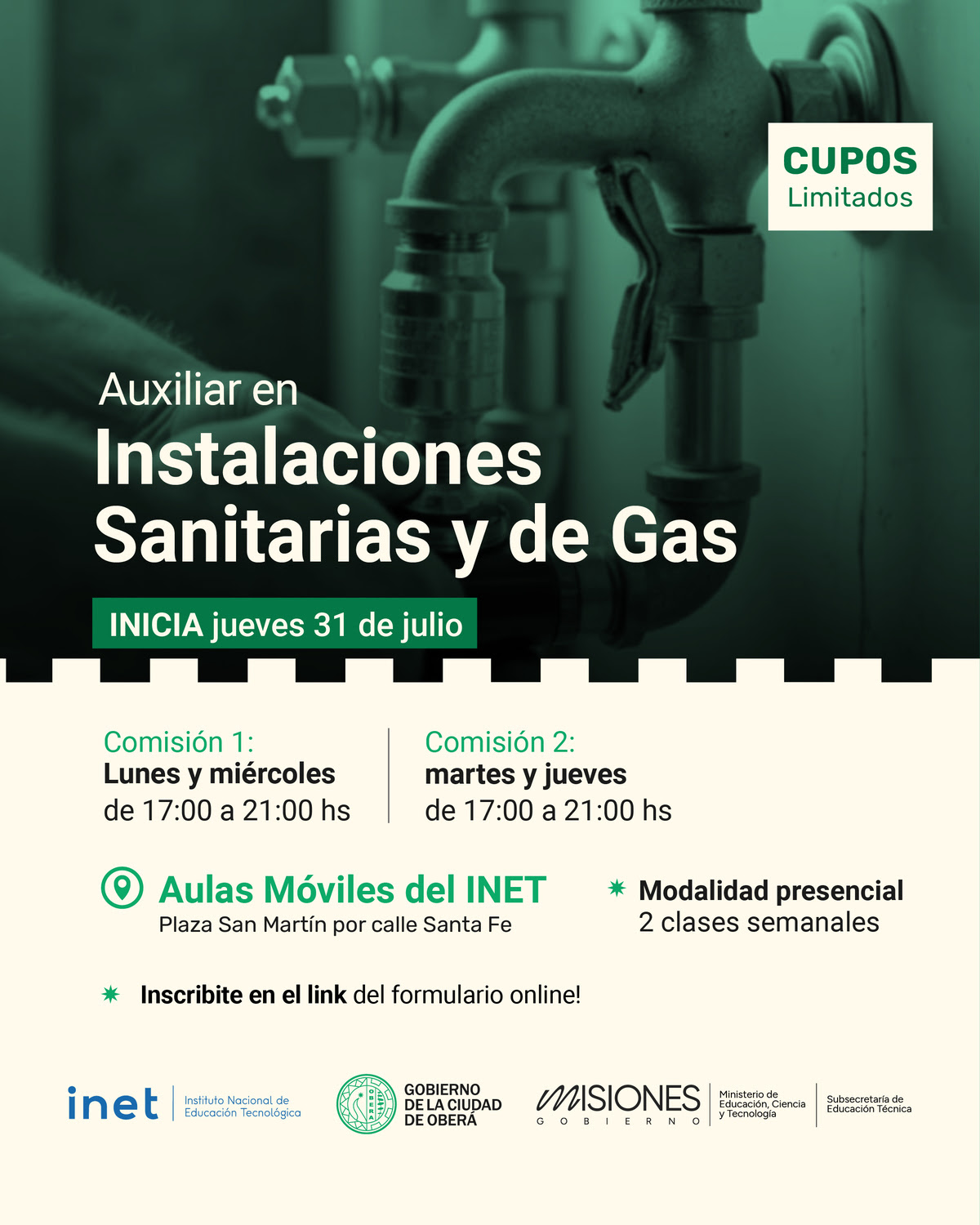 A partir del jueves 31 de julio, el Gobierno de la Ciudad de Oberá da inicio a un nuevo ciclo de capacitaciones gratuitas en oficios, en articulación con la Subsecretaría de Educación Técnica.