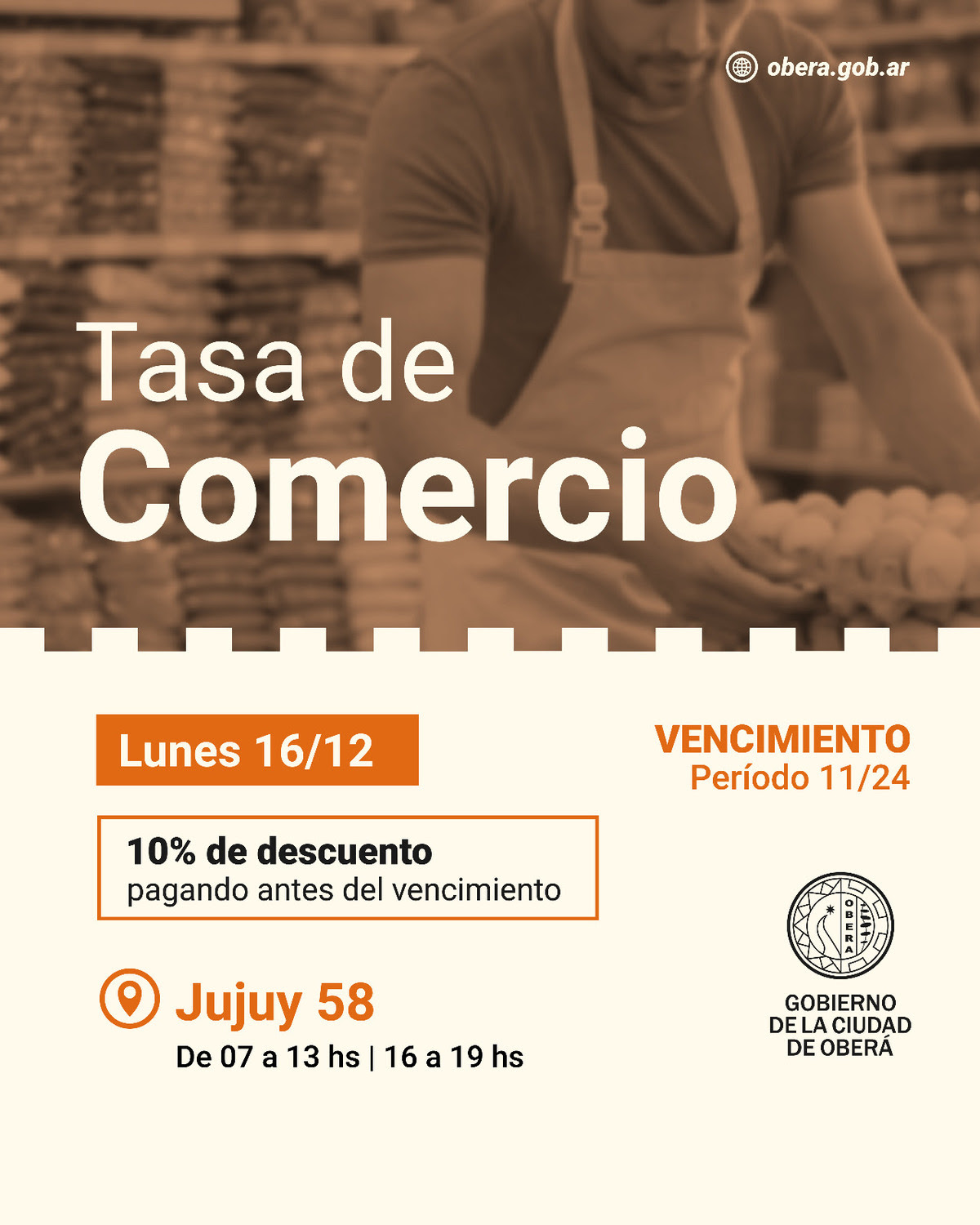 El Derecho de Inspección, Registro y Servicio de Contralor (Comercio), tendrá su vencimiento, el dÃa lunes 16 de diciembre del corriente año.