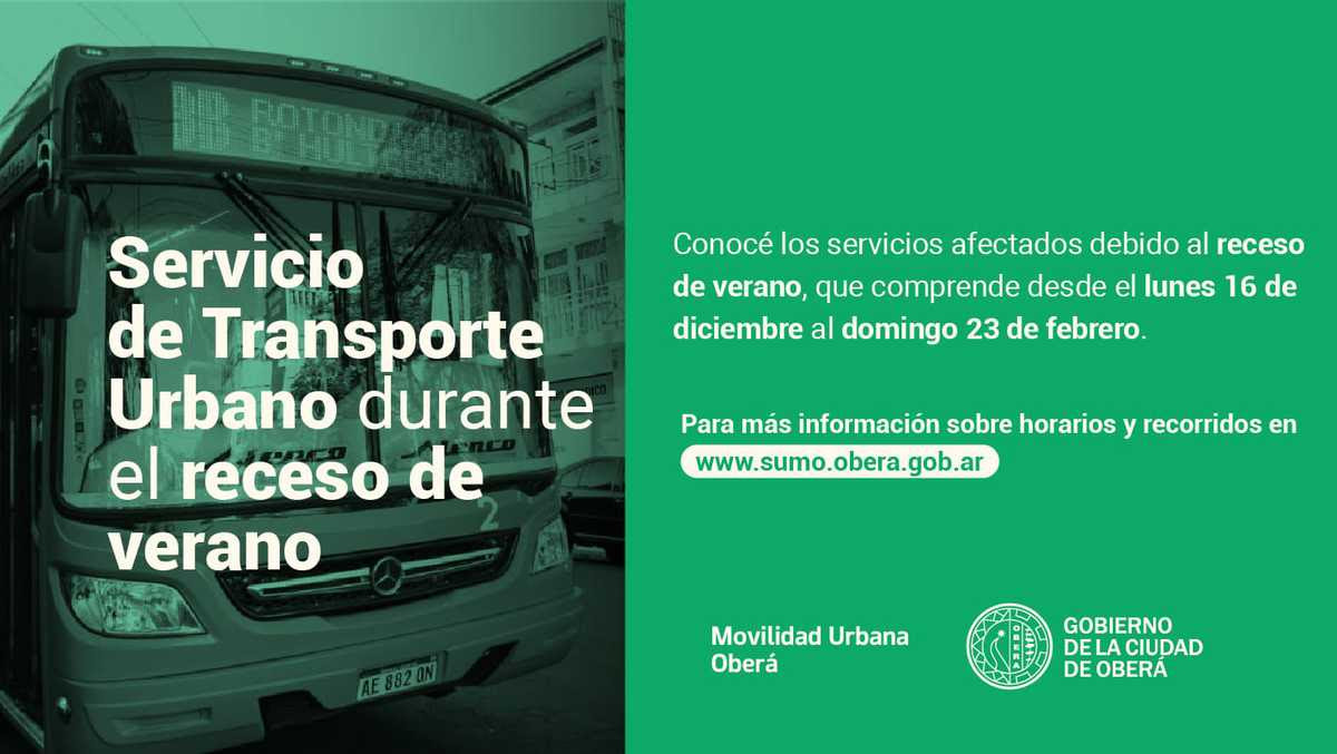 A partir de hoy lunes 16 de diciembre los horarios de colectivos tendrán los servicios de receso de verano hasta el domingo 23 de febrero inclusive.