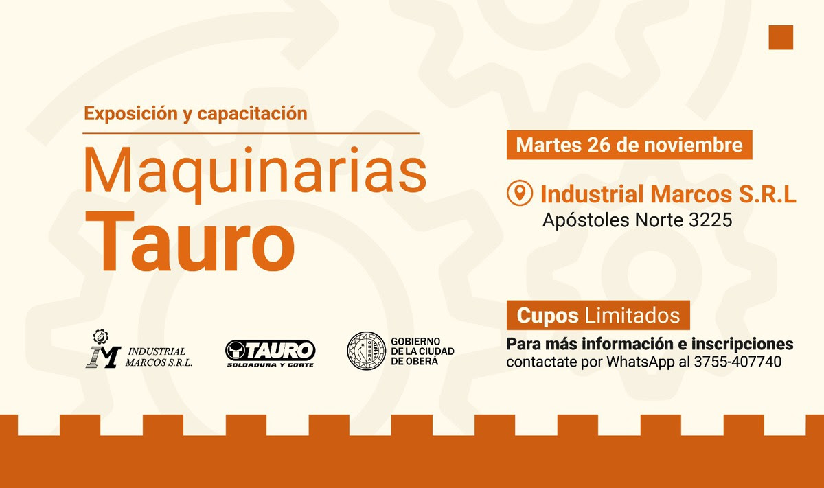 Soldadoras Tauro, UNIR S.A., son fabricantes de equipos de soldadura eléctrica por arco y equipos de corte plasma, estarán en Oberá realizando una exposición y capacitación el 26 de noviembre