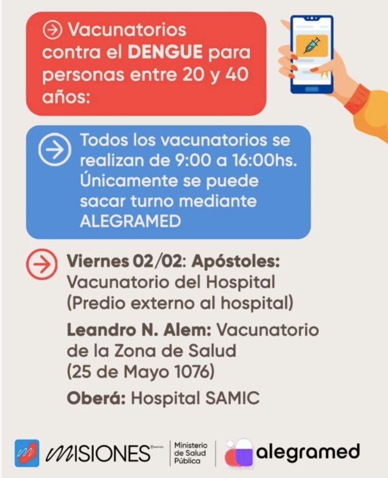 Los turnos para acceder a la vacunación contra el dengue se gestionan únicamente a través de la app Alegramed.