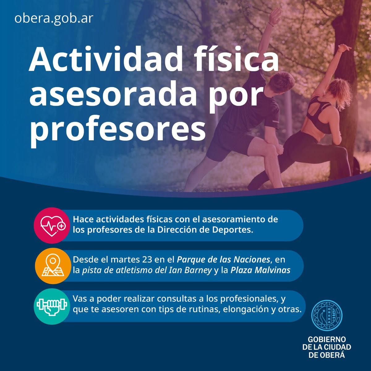 Actividades fÃsicas guiadas, en distintos puntos de la ciudad