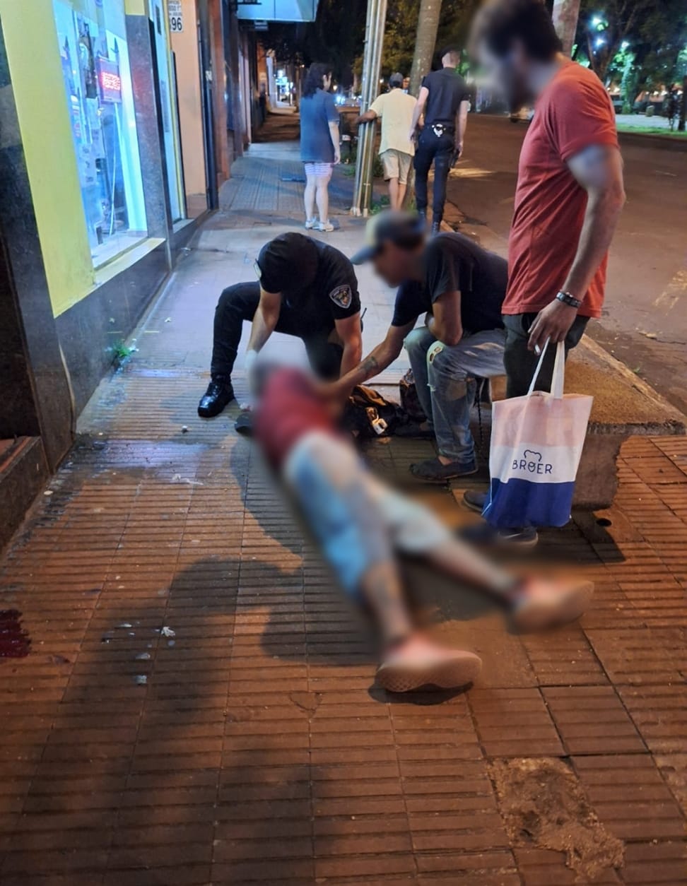 Alrededor de las 22.30 horas y a raíz de llamado telefónico al CIO 911, efectivos de Prevención de Delitos asistieron al primer requerimiento donde hallaron a Daniel L. (47) en la parada de colectivos con un corte en la cabeza, producto de haber tropezado, caído y golpeado la cabeza contra el borde de una vidriera. Tras brindarle los primeros auxilios, una ambulancia lo trasladó al Hospital Samic para recibir atención médica.