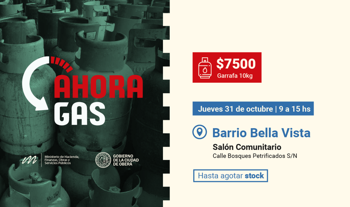 Ahora Gas, el jueves 31 en Oberá