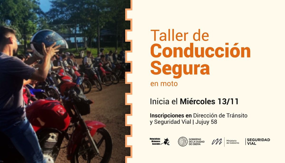 El próximo miércoles 13 de noviembre se realizará el taller para motociclistas sobre conducción segura. Es una actividad que se divide en una parte teórica y la otra en práctica.