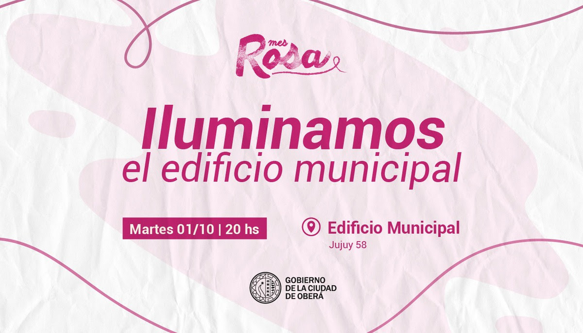 Mañana martes 1 de octubre, se iluminará de color rosa, el edificio del Gobierno de la Ciudad, para fomentar la lucha contra el cáncer de mama. Actividad que se realizará a las 20 horas.