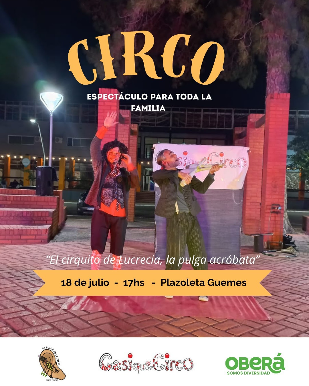 La Dirección de Turismo, invita a toda la comunidad a vivir una tarde muy divertida con la presentación de "El Cirquito de Lucresia, la pulga acrobata¨.