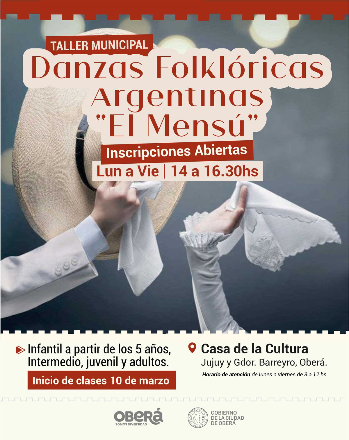 El área de Cultura del Gobierno de la Ciudad de Oberá informa que se encuentran abiertas las inscripciones para los talleres municipales.